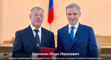 В преддверии важной исторической даты — Дня освобождения Смоленщины — Губернатор Смоленской области В.Н. Анохин провел торжественную церемонию вручения государственных наград и поощрений от Президента России Владимира Владимировича Путина. Среди награжденных тренер-преподаватель отделения пауэрлифтинга СШОР «Юность России» Апенкин Иван Иванович, которому был вручен знак «Заслуженный работник физической культуры».
