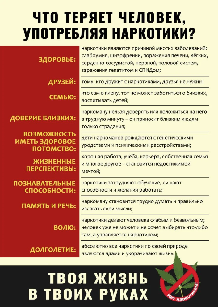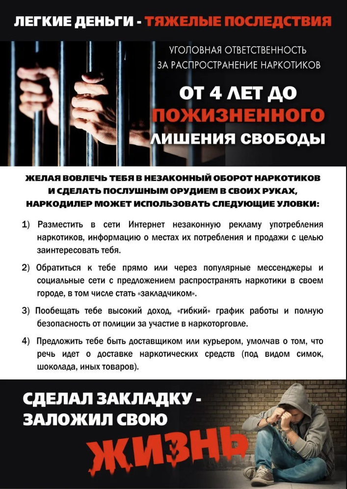 Наркотики — угроза жизни и свободы. Информация о вреде, признаках зависимости и уголовной ответственности